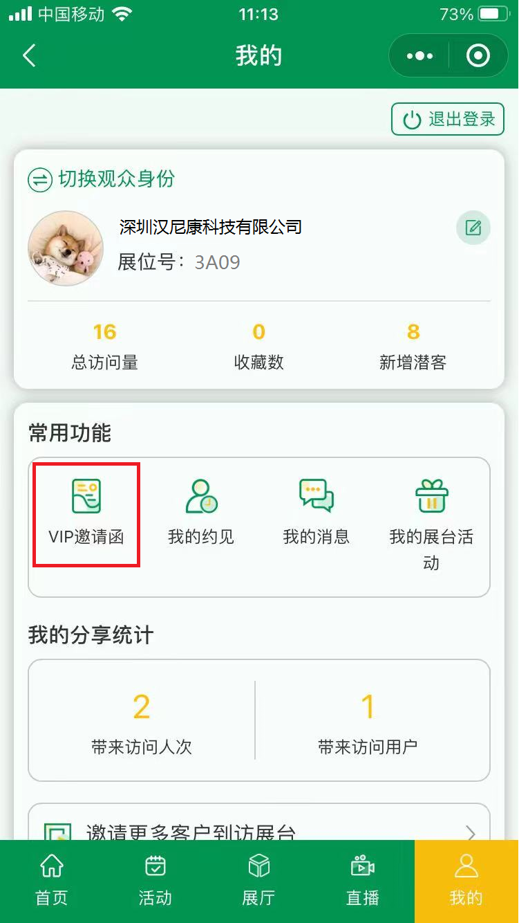 3. 填寫完以上信息后,在小程序“網(wǎng)上展廳”選擇【展商登錄】,登錄后點擊【VIP邀請函】,即可生成貴司的專屬邀請函。