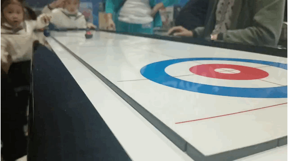 體驗(yàn)者們斗志昂揚(yáng),瞄準(zhǔn),推球,滑弧線