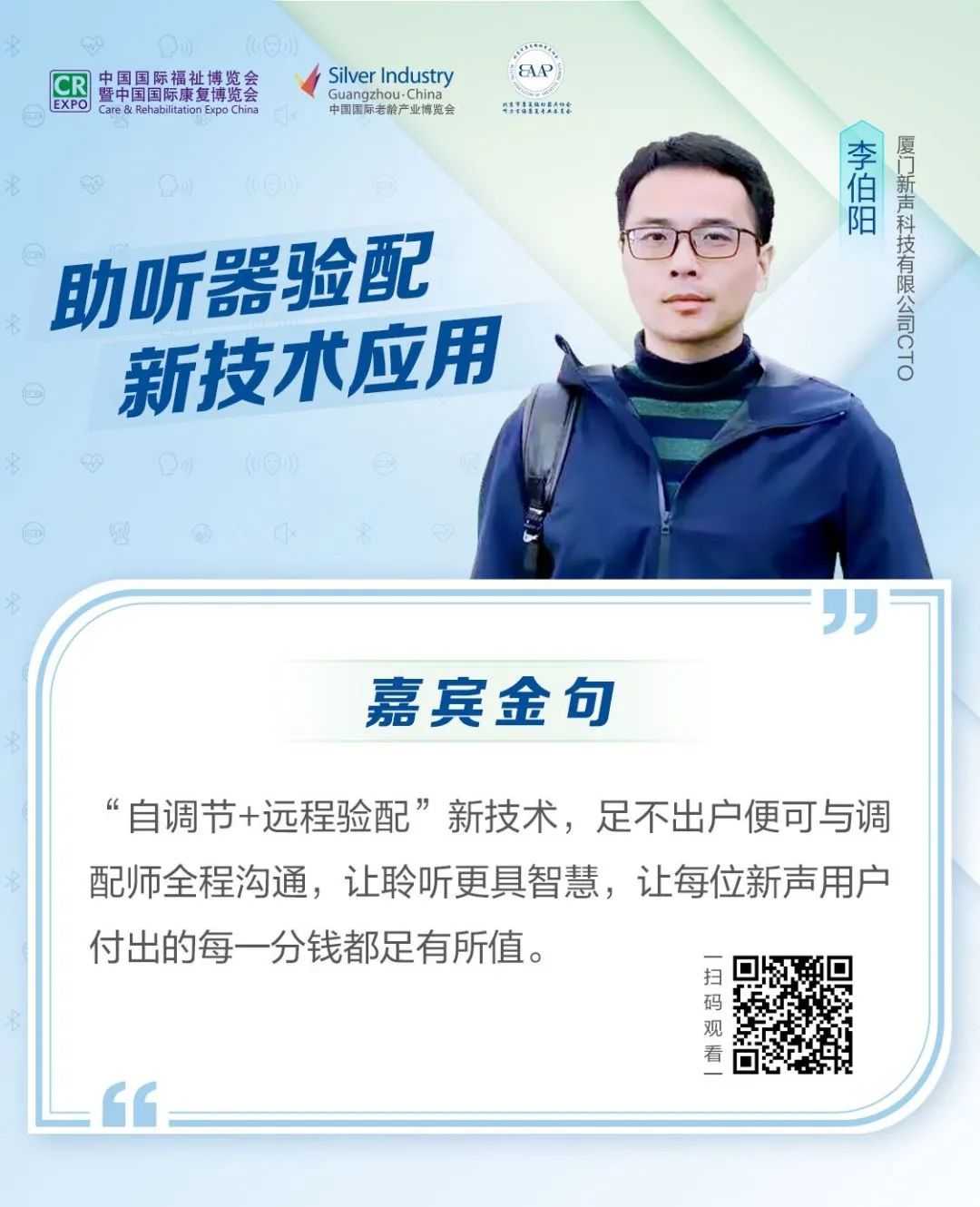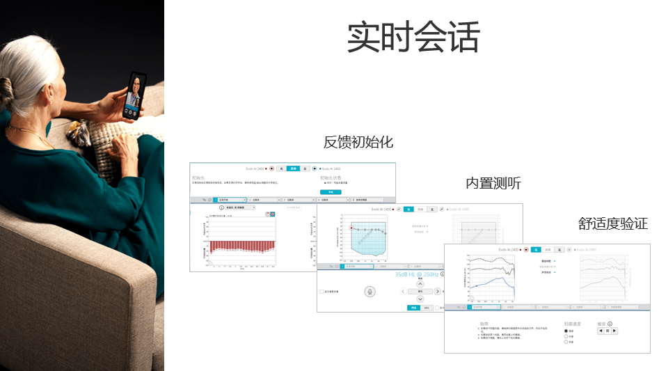 分享會上李伯陽指出目前我國聽力現(xiàn)狀的痛點和現(xiàn)狀,并基于此提出了“自調(diào)節(jié)+遠程配驗”技術(shù)的機遇和挑戰(zhàn)。同時也為我們分享了臨床案例分析,從而證實了該技術(shù)的可行性與優(yōu)勢,使聽力受損患者能夠足不出戶便能與調(diào)配師全程溝通,讓聆聽變得更具智慧。
