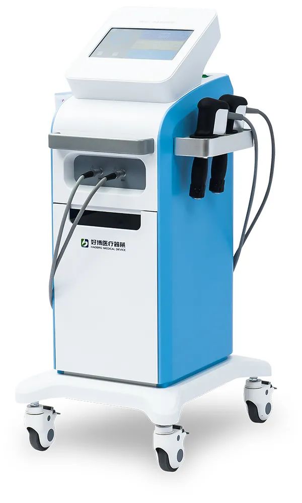利用壓縮空氣驅使子彈體撞擊治療探頭產(chǎn)生的彈道式?jīng)_擊波作用于機體,產(chǎn)生空化效應、應力效應、代謝激活效應、鎮(zhèn)痛效應來輔助治療疾病。