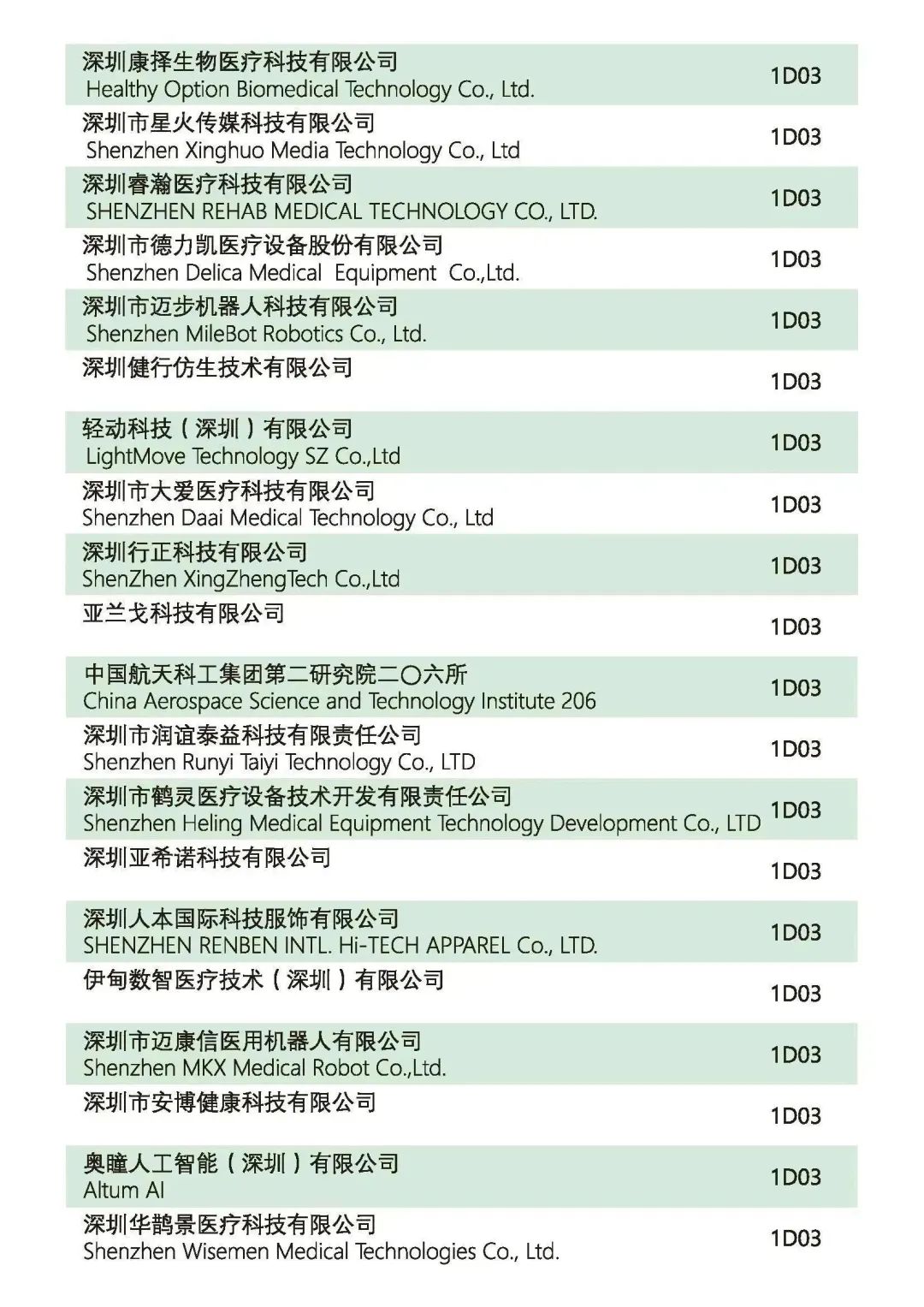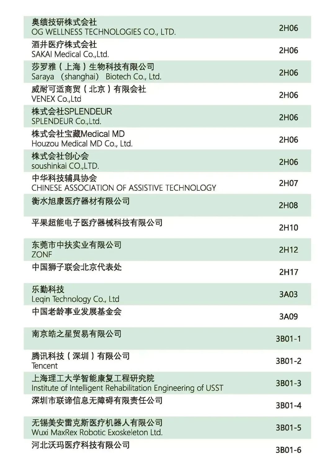 參展企業(yè)名錄
