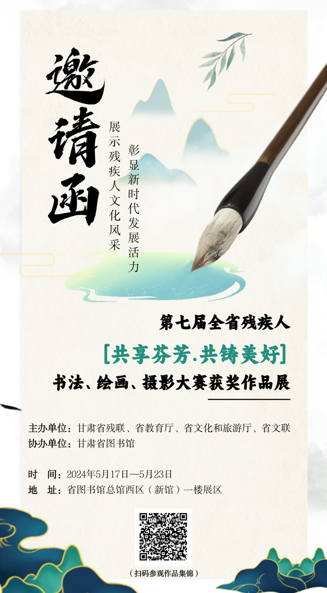 5月17——23日,甘肅殘聯(lián)將舉辦第七屆全省殘疾人“共享芬芳·共鑄美好”書法、繪畫、攝影大賽獲獎作品展。