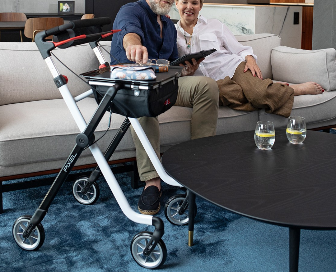 瑞格-皮克斯是專為室內(nèi)使用而設計的助行器。獨特的雙色X型邊框,簡約時尚。小而輕巧的車身,搭配減震軟輪,使整車可以輕松跨越障礙物。大托盤實用性高,可以作為邊桌使用,邊框巧妙的設計使皮克斯可以輕松的在床、沙發(fā)和餐桌等家具下方滑動。也可以把托盤拆卸下來,當做餐盤使用。