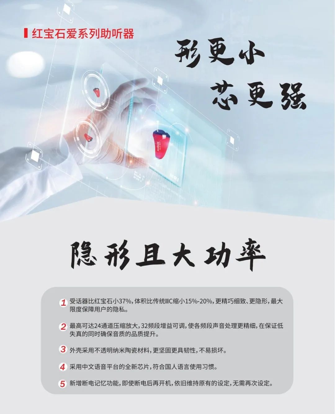 覆蓋全范圍聽力損失需求(134dB),搭載降噪、方向性語(yǔ)言增強(qiáng)、環(huán)境識(shí)別及雙麥克風(fēng)技術(shù),幫助用戶輕松捕捉并分辨語(yǔ)音。搭載升級(jí)版的自適應(yīng)聲反饋消除技術(shù),消除惱人的噪聲,聽聲更清晰,輕松遠(yuǎn)離嘯叫;清晰音質(zhì)與多拐點(diǎn)技術(shù)相結(jié)合,音質(zhì)更加飽滿豐富。體積大、操作方便、選配靈活,是老年人首選助聽器。