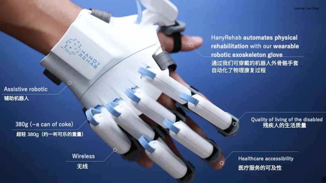 HANDYREHAB HandyGlove是一款智能機器人手套系統(tǒng),已獲得專利并經(jīng)過臨床驗證,可幫助中風康復(fù)患者恢復(fù)高達90%的完全運動控制能力。這是一款便攜式輔助設(shè)備,能夠幫助殘疾人士完成日常任務(wù),例如拿起一杯水。