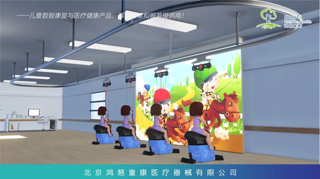 虛擬與現(xiàn)實(shí)馬術(shù)動(dòng)態(tài)康復(fù)訓(xùn)練系統(tǒng)簡(jiǎn)稱“馬術(shù)康復(fù)訓(xùn)練系統(tǒng)”,該系統(tǒng)模擬不同狀態(tài)下馬匹不同動(dòng)作的律動(dòng)及頻率,并結(jié)合虛擬的情景互動(dòng)訓(xùn)練系統(tǒng),模仿馬匹行走、奔跑、跳躍、前仰、后翻等動(dòng)作變化,模擬森林、河流、海邊的自然環(huán)境變化,實(shí)現(xiàn)快樂狀態(tài)下的沉浸式運(yùn)動(dòng)康復(fù)訓(xùn)練,針對(duì)生理、心理、認(rèn)知、社會(huì)化及行為上有問題的人群進(jìn)行康復(fù)訓(xùn)練,以達(dá)到放松肌張力、提高協(xié)調(diào)性加速功能恢復(fù)進(jìn)程,對(duì)偏癱、腦癱、肢體運(yùn)動(dòng)功能障礙、發(fā)育遲緩、多動(dòng)癥、孤獨(dú)癥、感覺統(tǒng)合功能的調(diào)整增加新的康復(fù)元素。