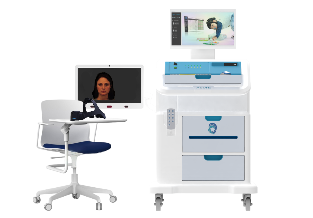 孤獨(dú)癥評(píng)估與康復(fù)系統(tǒng)由數(shù)字康復(fù)管理平臺(tái)(醫(yī)療級(jí)推車)及多臺(tái)康復(fù)終端設(shè)備組成,適用于孤獨(dú)癥譜系障礙及相關(guān)發(fā)育障礙患者的篩查、評(píng)估和康復(fù)治療。本系統(tǒng)搭載了一系列專業(yè)的篩查評(píng)估工具,創(chuàng)新性地采用“基于測(cè)評(píng)結(jié)果智能匹配個(gè)別化康復(fù)計(jì)劃”的解決方案,契合并滿足了高效評(píng)估、臨床康復(fù)、居家訓(xùn)練、康復(fù)管理等場(chǎng)景的需求,切實(shí)提升了康復(fù)服務(wù)的效率和效果。