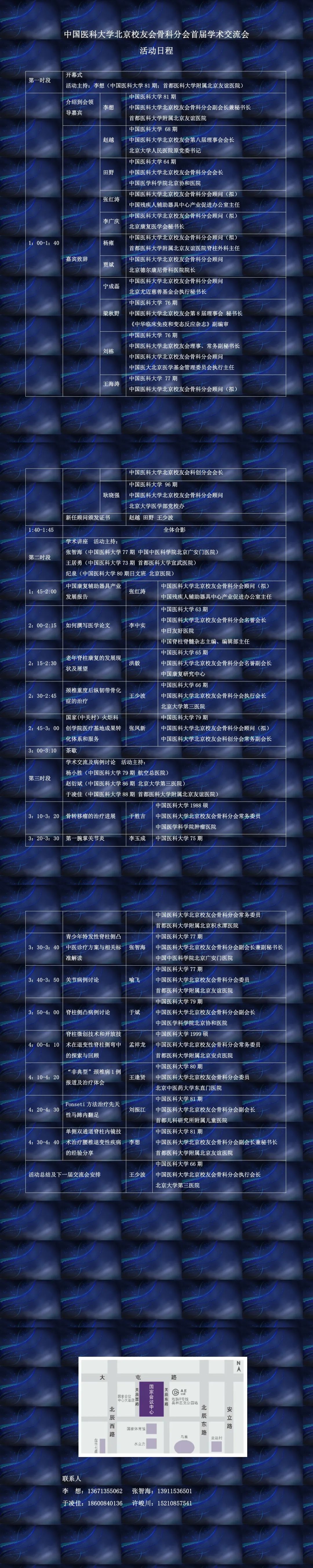 中國(guó)醫(yī)科大學(xué)北京校友會(huì)骨科分會(huì)會(huì)長(zhǎng)田野教授、執(zhí)行會(huì)長(zhǎng)王少波教授,代表骨科分會(huì)全體委員誠(chéng)摯邀請(qǐng)所有在北京工作的中國(guó)醫(yī)科大學(xué)校友參加本次學(xué)術(shù)活動(dòng),共同為校友會(huì)以及骨科分會(huì)的發(fā)展貢獻(xiàn)智慧和力量。同時(shí)也歡迎骨科相關(guān)專業(yè)人員積極參會(huì)(活動(dòng)日程附后)。大會(huì)主委會(huì)全體人員期待您的光臨。