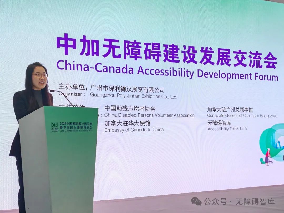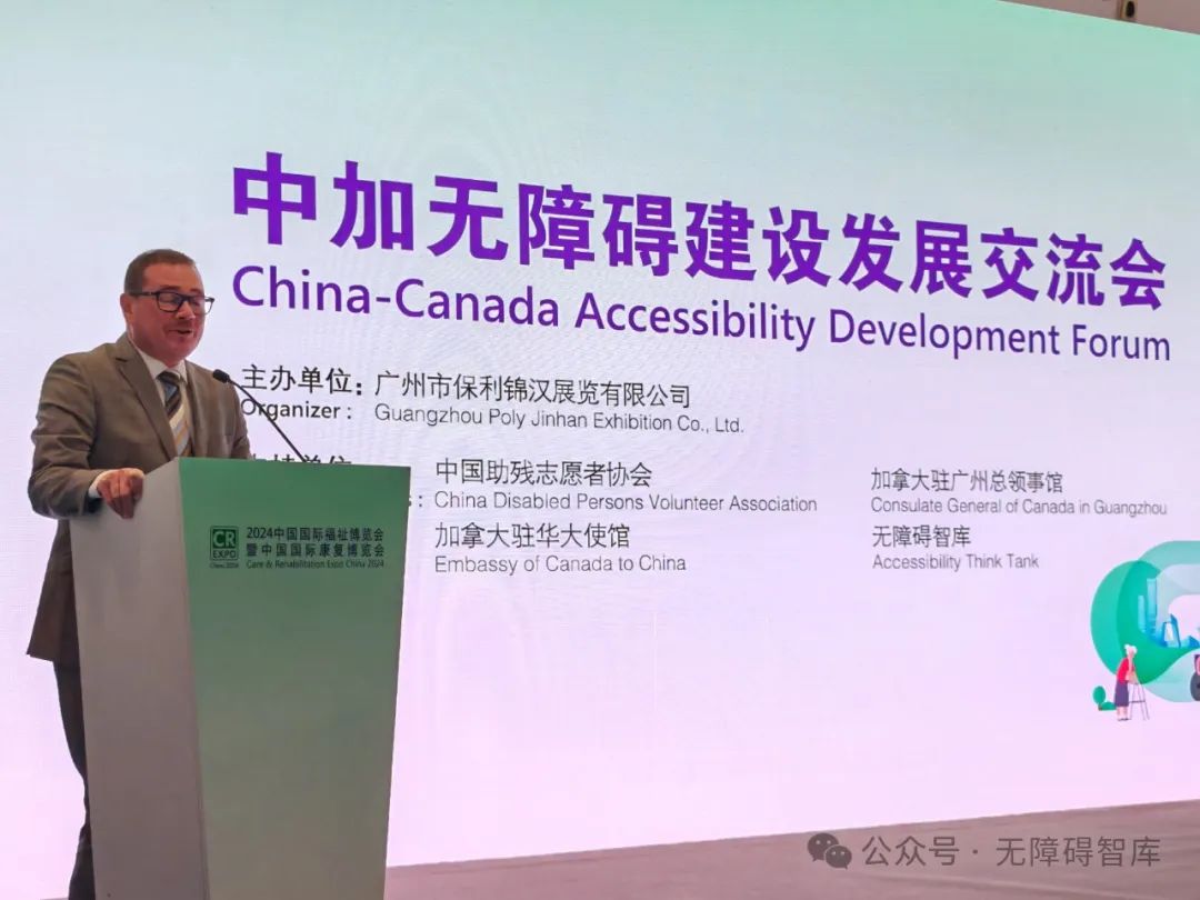 加拿大駐華使館商務(wù)參贊樂峰在致辭說,在國際殘疾人日即將到來之際,中國國際福祉博覽會協(xié)辦單位廣州市保利錦漢展覽有限公司舉辦此次交流會,感謝中國殘疾人輔具中心、中國助殘志愿者協(xié)會的大力支持。此次我們組織了6家加拿大企業(yè)參展福祉博覽會,帶來了加拿大在環(huán)境建設(shè)、聽力康復(fù)、健康管理、假肢適配等領(lǐng)域的解決方案。中國在殘疾人融合領(lǐng)域也取得了諸多進展,一個顯著的里程碑就是去年新頒布實施的《無障礙環(huán)境建設(shè)法》。接下來可以在呂世明會長及中方專家的報告里,了解到更多的中國在促進殘疾人包容方面的最新發(fā)展和舉措。我們也期待更多的加拿大無障礙建設(shè)的解決方案能在中國落地,參與到中國的無障礙發(fā)展中,為殘疾人和老年人創(chuàng)建更包容的環(huán)境。