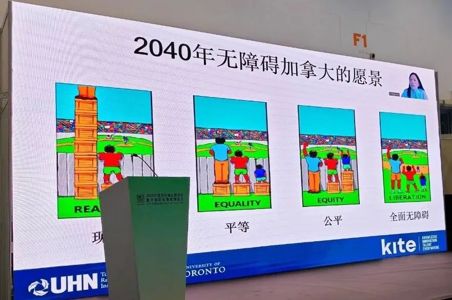 加拿大無障礙標準委員會下屬建筑環(huán)境無障礙標準技術(shù)委員會副主席,KITE研究所-University Health Network科學(xué)家和戰(zhàn)略合作伙伴主管,多倫多大學(xué)機械與工業(yè)工程系兼職教授Sophia Yue Li(李悅)作《沒有我們,何談我們》的主旨演講