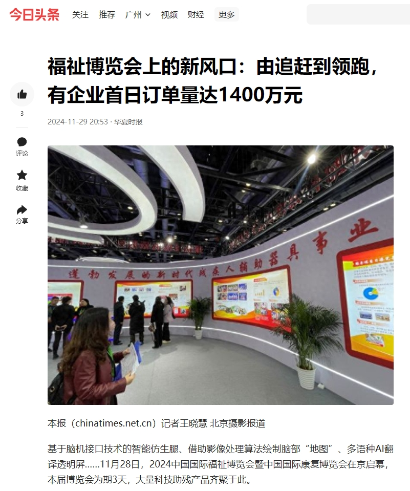 基于腦機(jī)接口技術(shù)的智能仿生腿、借助影像處理算法繪制腦部“地圖”、多語(yǔ)種AI翻譯透明屏……11月28日,2024中國(guó)國(guó)際福祉博覽會(huì)暨中國(guó)國(guó)際康復(fù)博覽會(huì)在京啟幕,本屆博覽會(huì)為期3天,大量科技助殘產(chǎn)品齊聚于此。