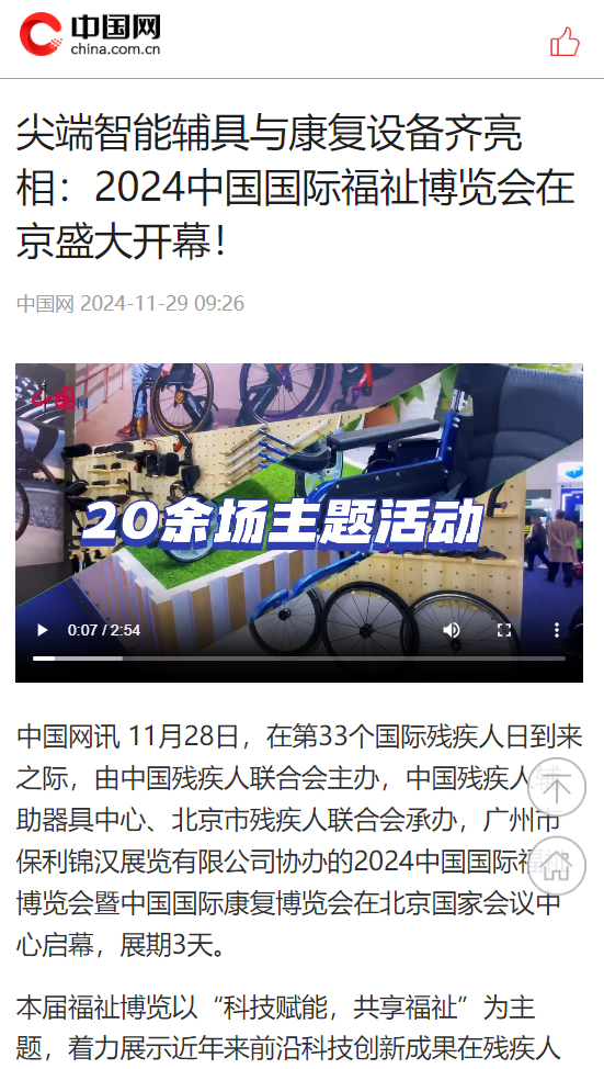 【中國網(wǎng)】尖端智能輔具與康復(fù)設(shè)備齊亮相:2024中國國際福祉博覽會在京盛大開幕!