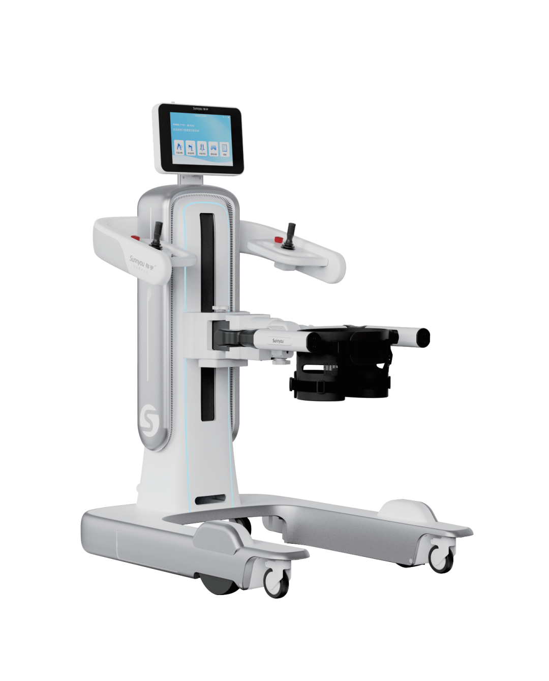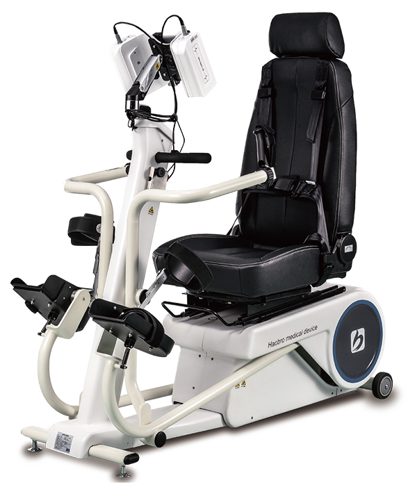 這是一款針對(duì)步行功能障礙進(jìn)行高效康復(fù)訓(xùn)練的下肢康復(fù)機(jī)器人。產(chǎn)品由計(jì)算機(jī)控制系統(tǒng)、步態(tài)矯正裝置系統(tǒng)、動(dòng)靜態(tài)減重系統(tǒng)、醫(yī)用跑臺(tái)系統(tǒng)以及情景互動(dòng)訓(xùn)練系統(tǒng)五大模塊組成。它可以使患者在直立體位下通過(guò)不斷重復(fù)且軌跡固定的步態(tài)訓(xùn)練,強(qiáng)化正常步態(tài)記憶,促進(jìn)患者本體感覺(jué)的輸入與正確運(yùn)動(dòng)模式的形成,從而加強(qiáng)大腦結(jié)構(gòu)和功能重塑,建立正確的行走模式并有效的鍛煉其相關(guān)肌肉與關(guān)節(jié),加速下肢功能的恢復(fù)。