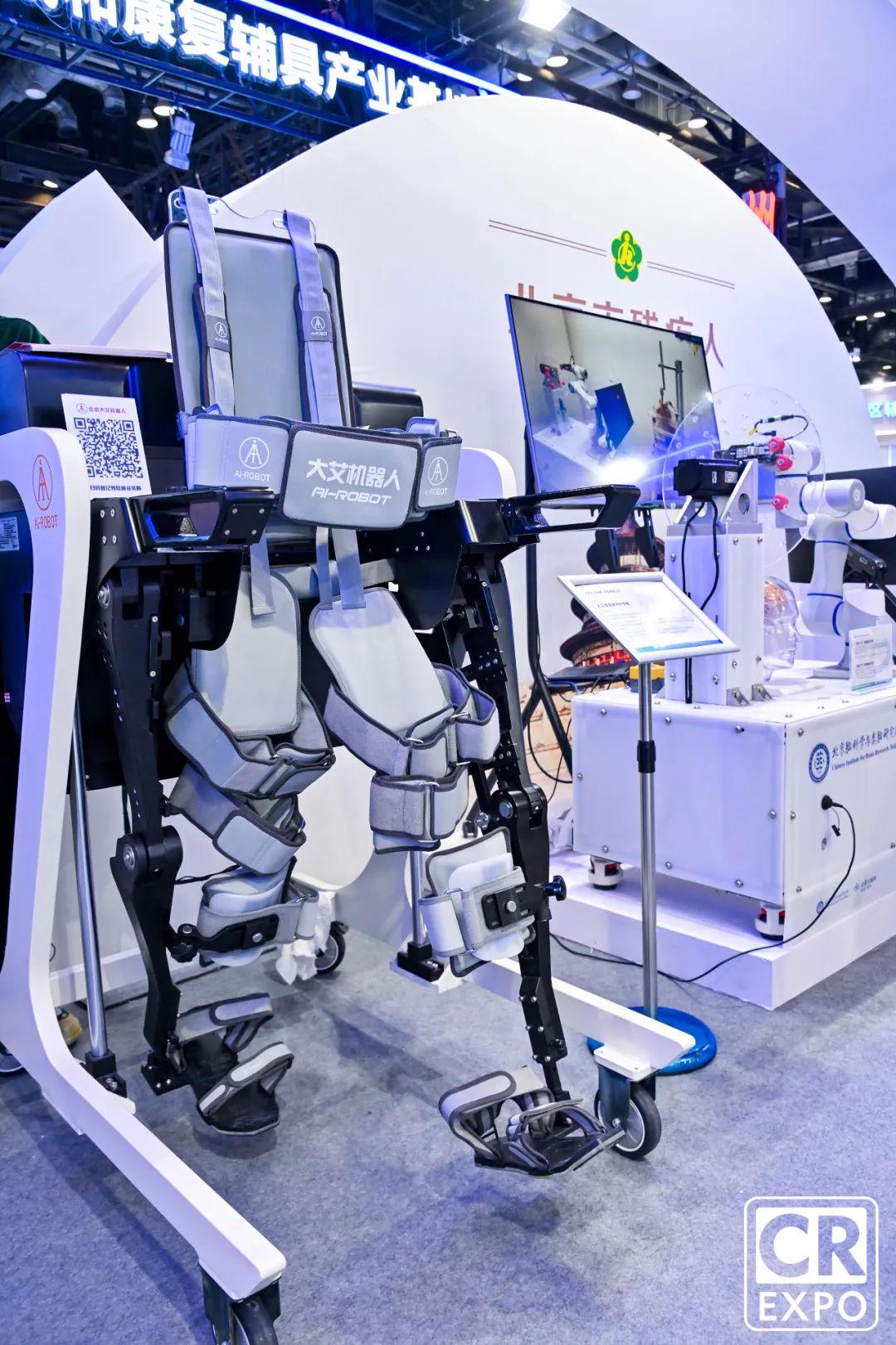 展示柔性外骨骼機(jī)器人等前沿科技產(chǎn)品