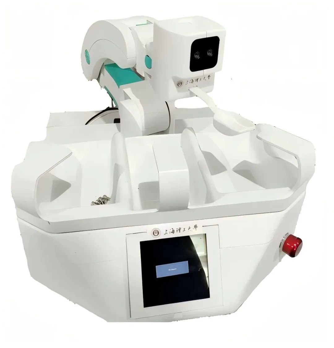 攜惠護理轉(zhuǎn)移機器人,座椅與目標智能適配、無縫對接,實現(xiàn)輕松自主轉(zhuǎn)移。上海理工大學智能助餐機器人,提出剛?cè)狁詈系臋C械結(jié)構(gòu)結(jié)合智能控制策略,實現(xiàn)機械臂的柔性交互,解決失能患者無法獨立進食的問題,減輕康養(yǎng)機構(gòu)、醫(yī)院、家庭環(huán)境下的照護壓力。
