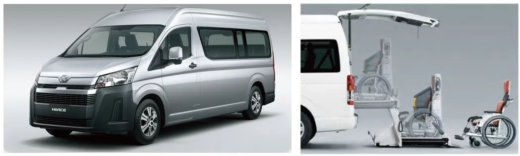 此版本是利用平行進口的海艾士定制開發(fā)的輕型客車(汽油),排量3.5L。車內有7個座位,含6個航空座椅,及1臺輪椅的固定乘車位,輪椅可通過車尾部搭載的電動升降平臺直接進入車內,平臺配備輪椅固定裝置及安全帶。也可根據(jù)不同用車需求,選擇3~9座(含駕駛位),1~3個輪椅位的不同版本的改裝。普通福祉版是日本養(yǎng)老機構的常用車型。