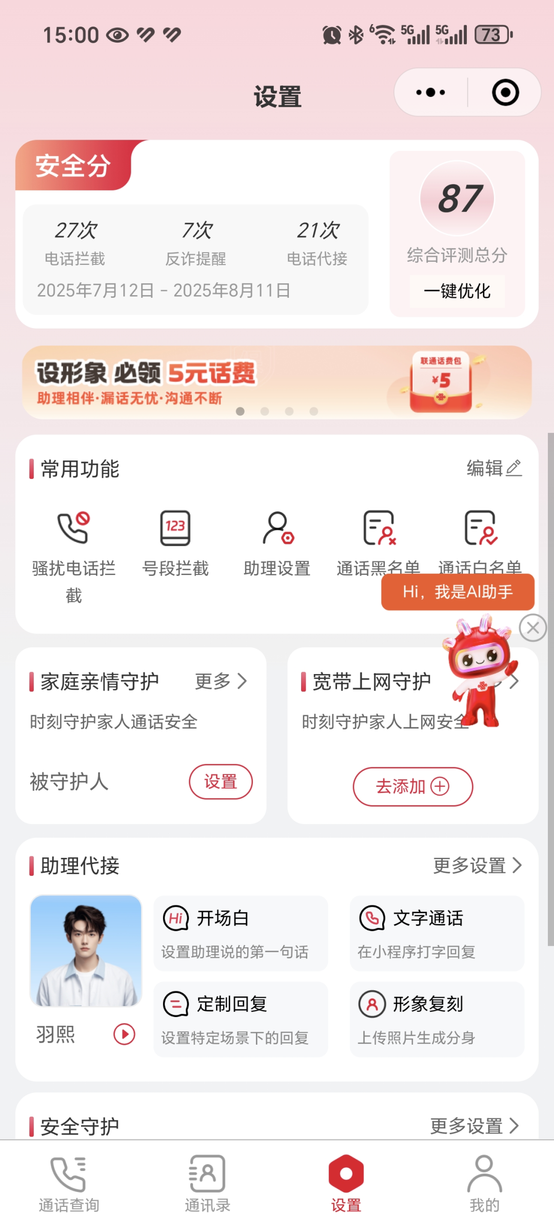 通信安全管家是圍繞通話安全、短信安全、親情守護、手機上網(wǎng)守護、寬帶上網(wǎng)守護五大場景打造的一款集涉詐識別、智能處置于一體的防詐騙、防騷擾產(chǎn)品,旨在為用戶提供一個更加安全、智能的通信環(huán)境。