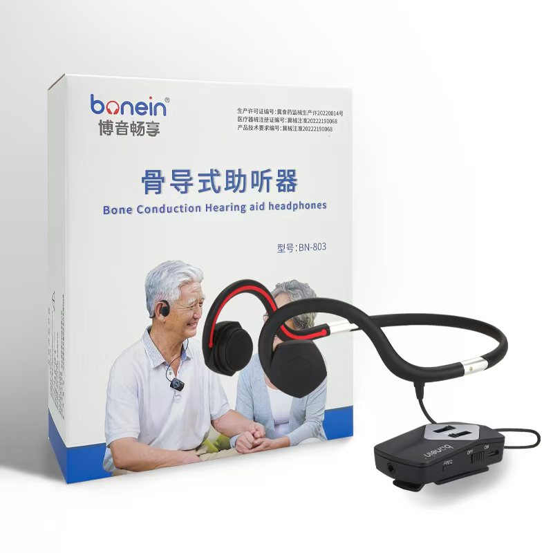 骨導(dǎo)式助聽器BN-803,不用塞進(jìn)耳朵,通過骨頭聽聲音,讓用戶聽到聲音同時還可以舒適佩戴。這款左右耳音量單獨調(diào)節(jié),讓用戶左右聽聲保持平衡;有7個頻段選擇,用戶在家選擇合適頻段就可以使用;另外還可以連接手機(jī)打電話聽音樂。一鍵降噪功能,抑制噪音,增強(qiáng)人聲。公司獲得10多項專利認(rèn)證。