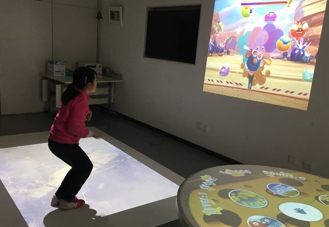 ? 當(dāng)參與者踏入投影投射的影響時(shí),可以直接使用雙腳或者雙手及身體的各個(gè)部位與虛擬場(chǎng)景進(jìn)行交互,產(chǎn)生各種互動(dòng)效果,從而達(dá)到感統(tǒng)訓(xùn)練的效果。