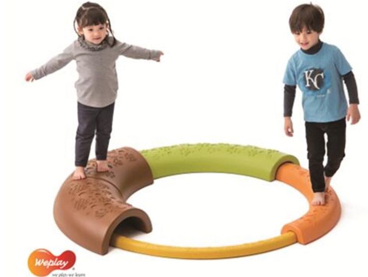 ? 四種不同寬窄、高度的步道,相互嵌合即能伸縮改變路徑長(zhǎng)短,滿足各年齡平衡游戲的需求。