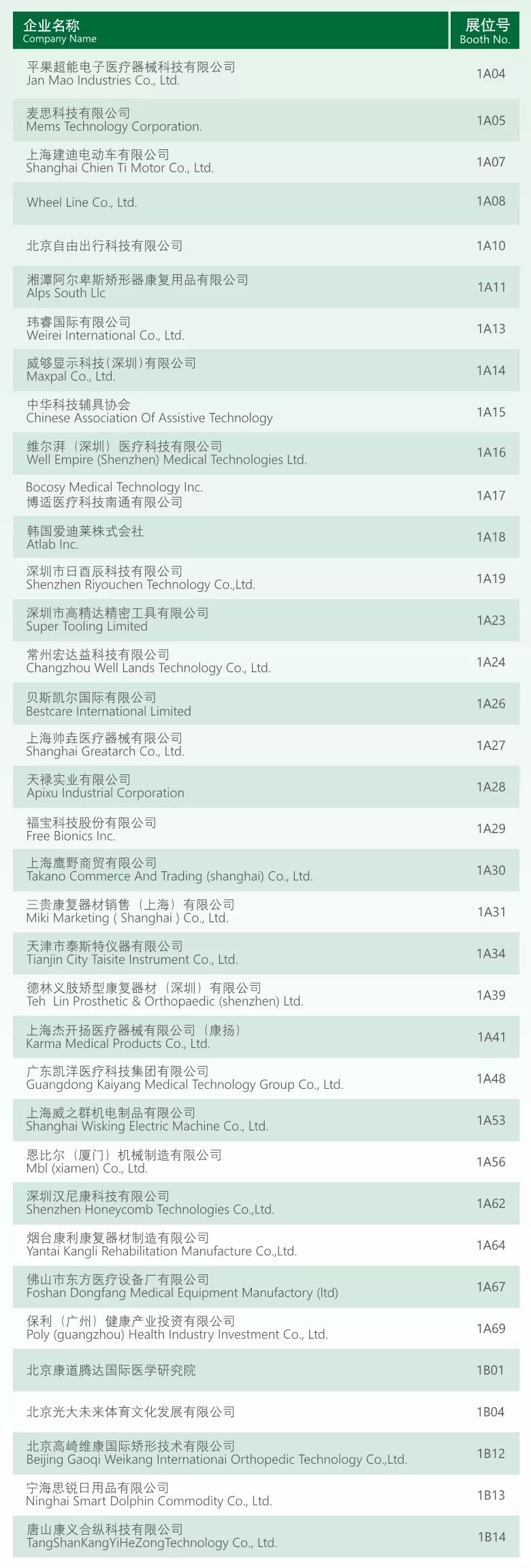 參展企業(yè)名單請收好