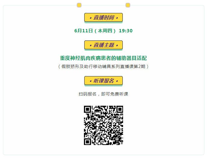 繼假肢安裝的康復(fù)問題、足部矯形器的計算機輔助設(shè)計與制造兩個主題的實用分享,中國國際福祉博覽會繼續(xù)攜手中國康復(fù)研究中心,邀請中國康復(fù)研究中心假肢矯形部主任劉勁松三度做客直播,本期將圍繞重度神經(jīng)肌肉疾病患者的輔助器具適配展開分享。
