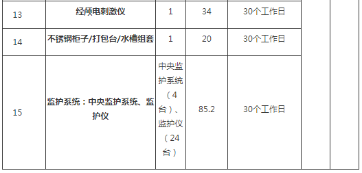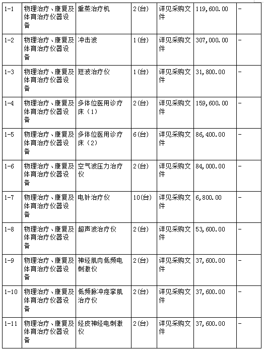 動(dòng)態(tài)心電儀1臺(tái)、排痰機(jī)1臺(tái)、霧化器1臺(tái)、電動(dòng)多功能床3張、糖尿病治療儀1臺(tái)、微循環(huán)修復(fù)系統(tǒng)1套、熏蒸儀1臺(tái)、輪椅3把、幽門螺旋桿菌測(cè)定儀1臺(tái)(含設(shè)備運(yùn)輸、安裝、調(diào)試及售后具體參數(shù)詳見招標(biāo)文件)。