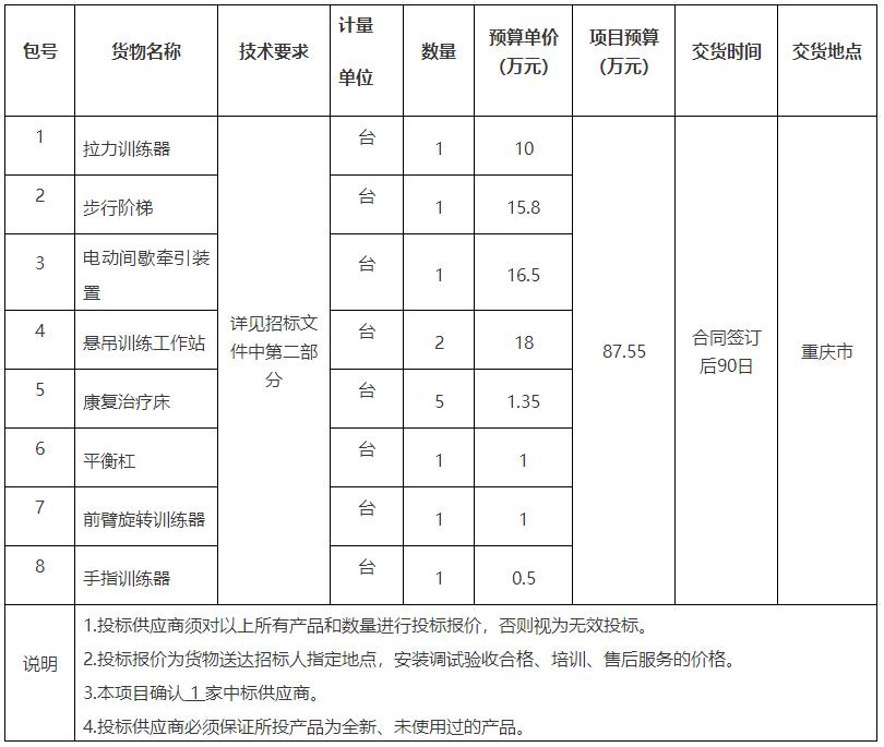 項(xiàng)目名稱:重慶市某單位康復(fù)訓(xùn)練器一批招標(biāo)公告(2022-JL13(03)-W10327)