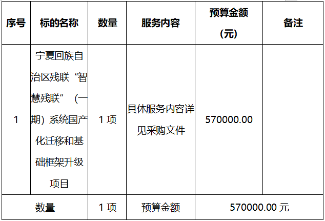 寧夏回族自治區(qū)殘聯(lián)“智慧殘聯(lián)”(一期)系統(tǒng)國產(chǎn)化遷移和基礎(chǔ)框架升級項目競爭性磋商公告