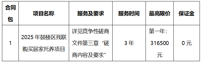 2025年鼓樓區(qū)殘聯(lián)購買居家托養(yǎng)項目競爭性磋商
