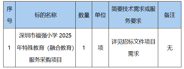深圳市福強小學2025年特殊教育(融合教育)服務(wù)采購項目招標公告
