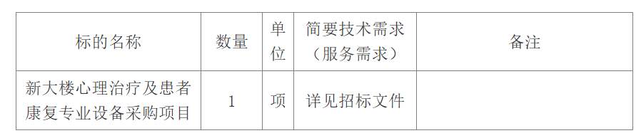 新大樓心理治療及患者康復(fù)專業(yè)設(shè)備采購項(xiàng)目招標(biāo)公告(重新采購第2次)
