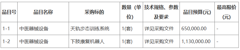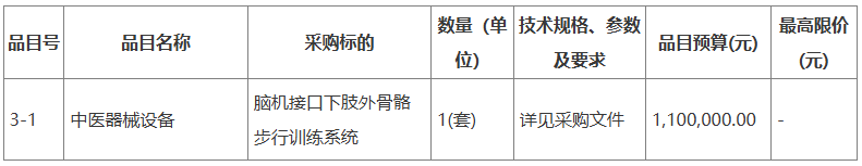廣州醫(yī)科大學(xué)附屬中醫(yī)醫(yī)院天軌步態(tài)訓(xùn)練系統(tǒng)、下肢康復(fù)機器人、認知語言康復(fù)訓(xùn)練平臺、腦機接口下肢外骨骼步行訓(xùn)練系統(tǒng)采購項目公開招標(biāo)公告