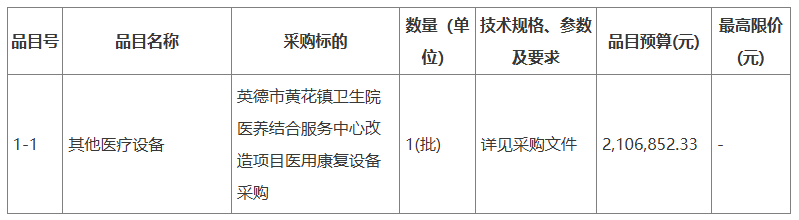 英德市黃花鎮(zhèn)衛(wèi)生院醫(yī)養(yǎng)結(jié)合服務(wù)中心改造項目醫(yī)用康復(fù)設(shè)備采購招標(biāo)公告