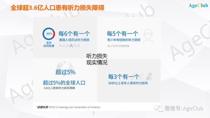 以聽(tīng)力殘疾為例,第二次全國(guó)殘疾人抽樣調(diào)查顯示60歲以上老年人患聽(tīng)力殘疾的比例高達(dá)11%。據(jù)此推算,中國(guó)60歲以上老年聽(tīng)力殘疾人總數(shù)目前已經(jīng)超過(guò)2000萬(wàn)。