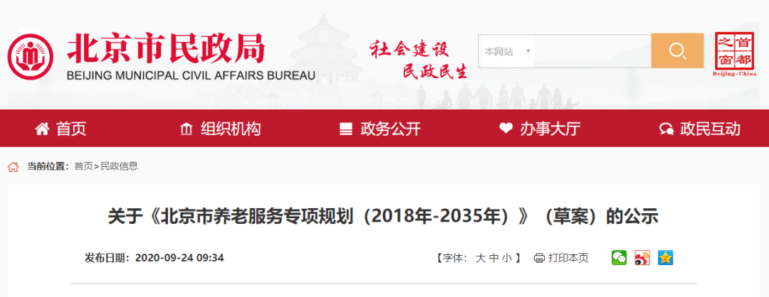 為落實北京城市總體規(guī)劃,自2018年6月以來,北京市民政局聯合北京市規(guī)劃和自然資源委員會共同編制《北京市養(yǎng)老服務專項規(guī)劃(2018年—2035年)》(以下簡稱“專項規(guī)劃”),目前已形成相對完善的文稿,現將專項規(guī)劃有關內容進行公示,公示期3天。如有意見或建議,請于2020年10月23日前傳真或電子郵件方式反饋至市民政局,逾期不予受理。