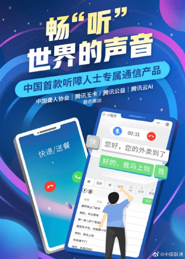 日前,中國聯(lián)通攜手騰訊和中國聾人協(xié)會聯(lián)合推出了“暢聽王卡”,針對聽障人士的手機通信困難,提供“無障礙AI通話服務(wù)”。