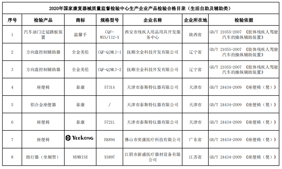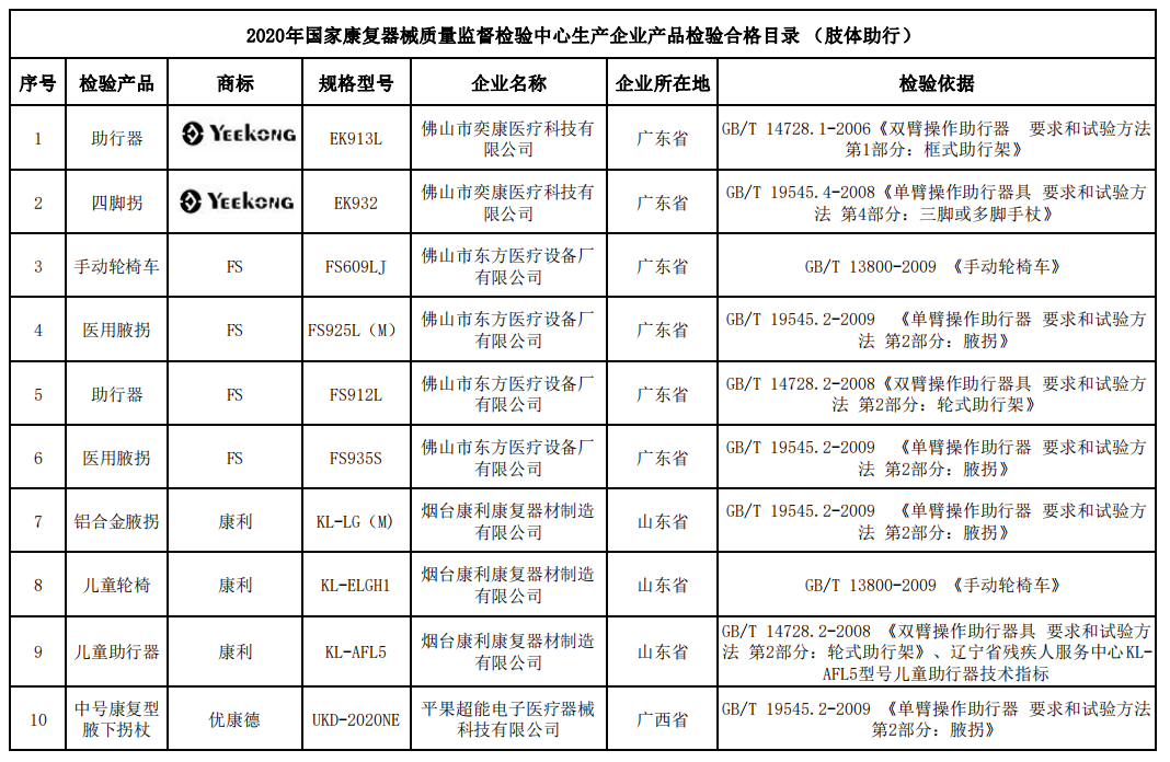 日前,中國(guó)殘疾人輔助器具中心公布了《國(guó)家康復(fù)器械質(zhì)量監(jiān)督檢驗(yàn)中心 2020年生產(chǎn)企業(yè)產(chǎn)品檢驗(yàn)合格目錄》,目錄包含假肢、肢體助行、聽(tīng)力、視力、康復(fù)訓(xùn)練器械、生活自助及輔助類共6類產(chǎn)品。