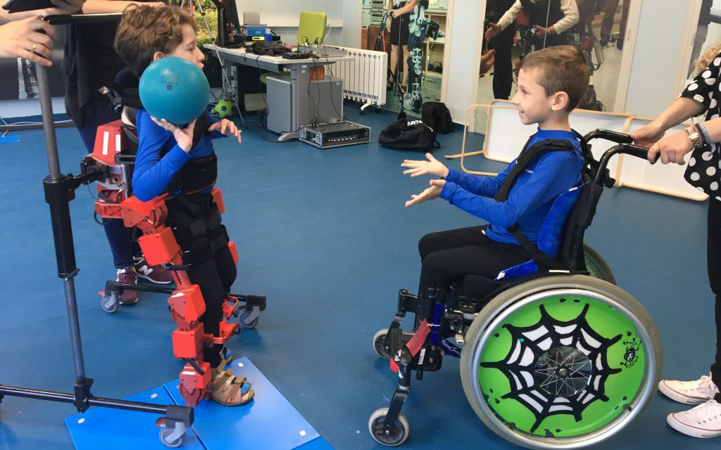 (圖:兒科肌肉病患者使用ATLAS 2030進行步態(tài)訓練;圖片來源:Marsi Bionics公司官網(wǎng))