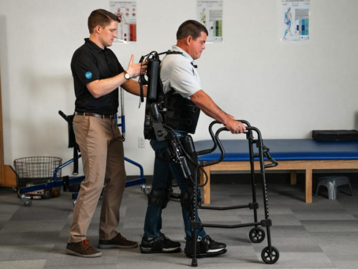 (圖:EksoHealth外骨骼輔助中風患者行走;圖片來源:Ekso Bionics官網(wǎng))