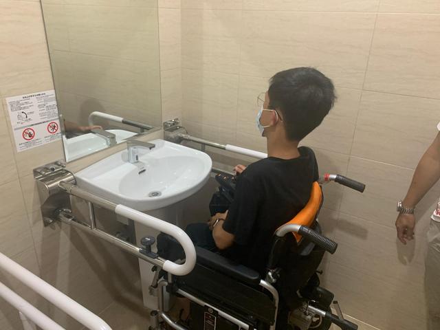 作為首位親身試用者,小方也在一些細(xì)節(jié)方面向紀(jì)念館提出建議:“如果要提建議的話,我覺得無(wú)障礙洗手間的門建議改成推拉門,這樣坐著輪椅開門關(guān)門會(huì)更方便些。”