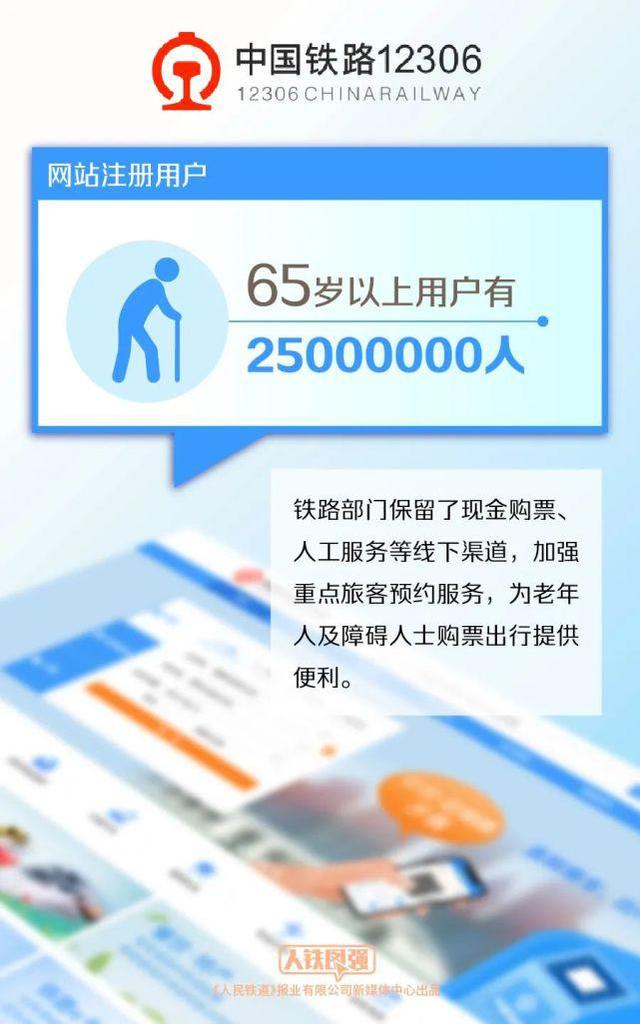 據(jù)統(tǒng)計(jì),目前在鐵路12306網(wǎng)站注冊(cè)的65歲以上用戶有2500萬人,實(shí)施適老化及無障礙功能改造,將有效解決老年人和障礙人士在網(wǎng)絡(luò)購票中遇到的實(shí)際問題,幫助他們更好地適應(yīng)并融入智慧社會(huì),進(jìn)一步提升購票體驗(yàn)。