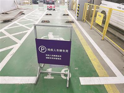 昨天,記者去蓮花港河地下停車場現(xiàn)場走訪,發(fā)現(xiàn)這里共有885個公共泊位,其中有18個是“無障礙專用車位”。車庫的各個通道路口,還有墻壁上,都有“無障礙”指示牌。目前,這些專用車位都用藍色的牌子攔起來了,工作人員告訴記者,它們都是專人專用,登記過的殘疾人司機開車進來,工作人員就會把車子引導(dǎo)到車位上。