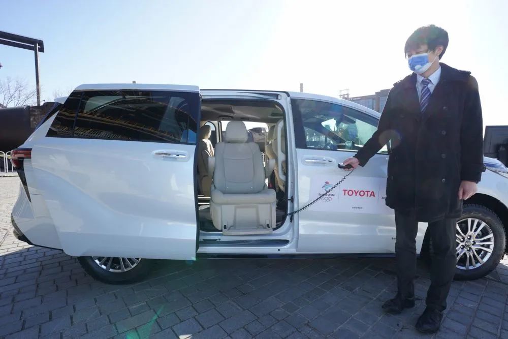 11月12日,北京2022年冬奧會(huì)和冬殘奧會(huì)賽事服務(wù)車輛交付,工作人員在演示賽事服務(wù)車輛上的無障礙座椅。新華社記者 鞠煥宗 攝