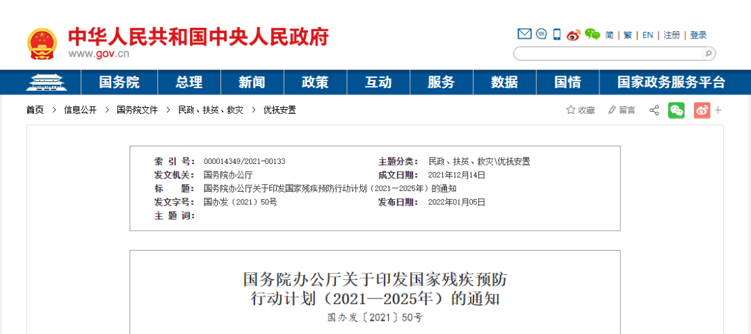 國(guó)務(wù)院辦公廳關(guān)于印發(fā)國(guó)家殘疾預(yù)防行動(dòng)計(jì)劃(2021—2025年)的通知