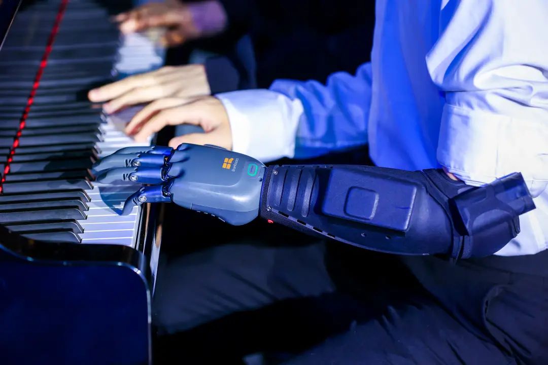 佩戴仿生手的殘疾人在現(xiàn)場(chǎng)彈鋼琴