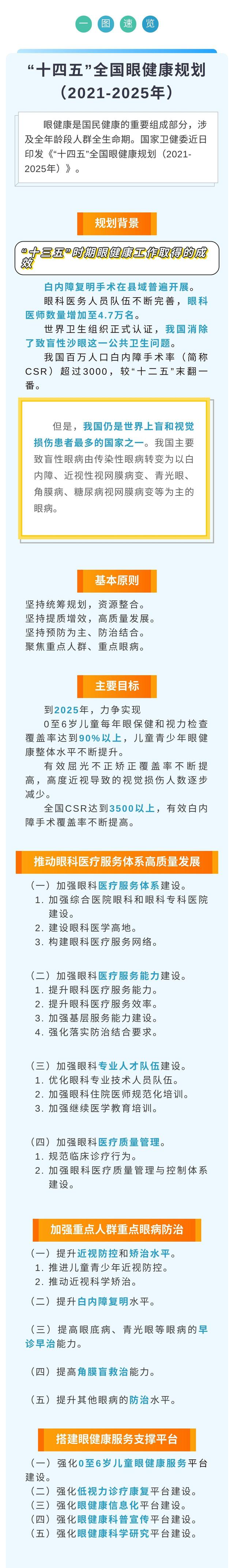 眼睛是心靈的窗戶,眼健康是國民健康的重要組成部分,涉及全年齡段人群全生命期。國家衛(wèi)健委近日印發(fā)《“十四五”全國眼健康規(guī)劃(2021-2025年)》,為“十四五”期間眼健康事業(yè)發(fā)展勾畫“路線圖”。