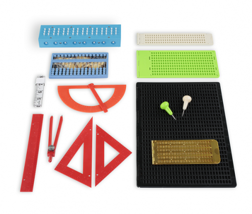 盲文寫字板、算盤、圓規(guī)、量角器、三角板、軟尺子、直尺。盲生學(xué)習(xí)盲文和其他學(xué)科的輔助工具,環(huán)保材質(zhì),安全無毒