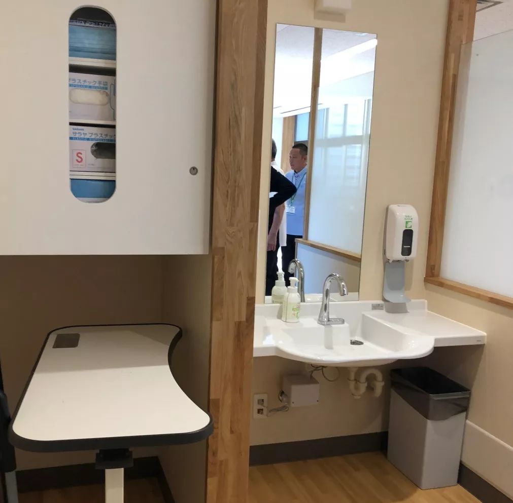 最往里的一個(gè)洗手池更具備升降功能: