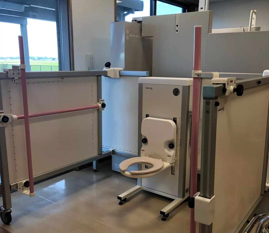 在和室后方,更有可以升降的模擬便器,及它后面的模擬淋浴房:
